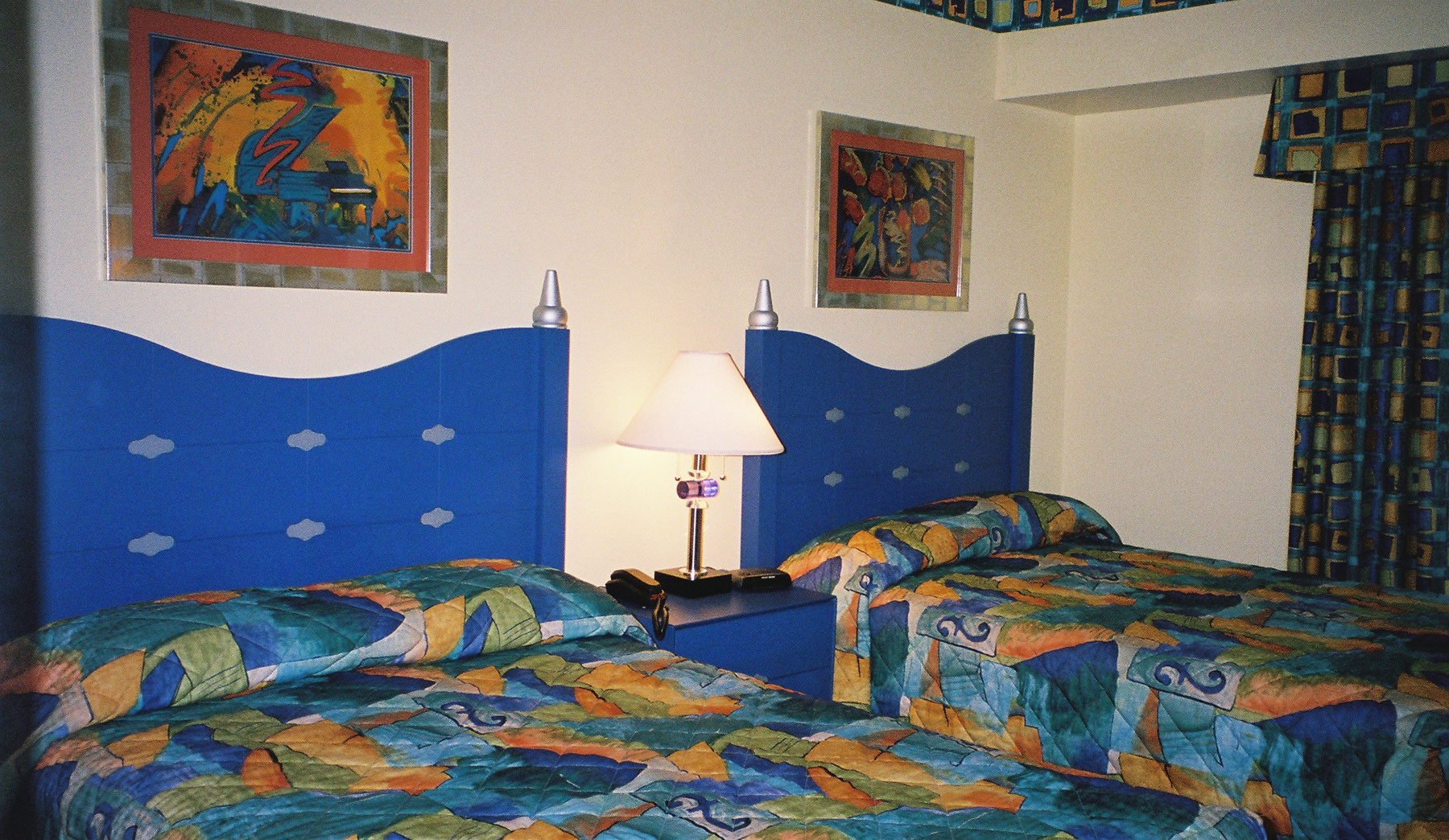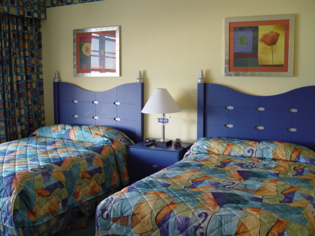 This is the new room, no couch, just 2 full beds, it’s a tight fit, we have about 14 inches between the beds – I did not have enough time to find a smaller nightstand before we blew town…. but this has a larger TV, and we left the other side of the lockout…. the efficiency kitchen is still in this unit…