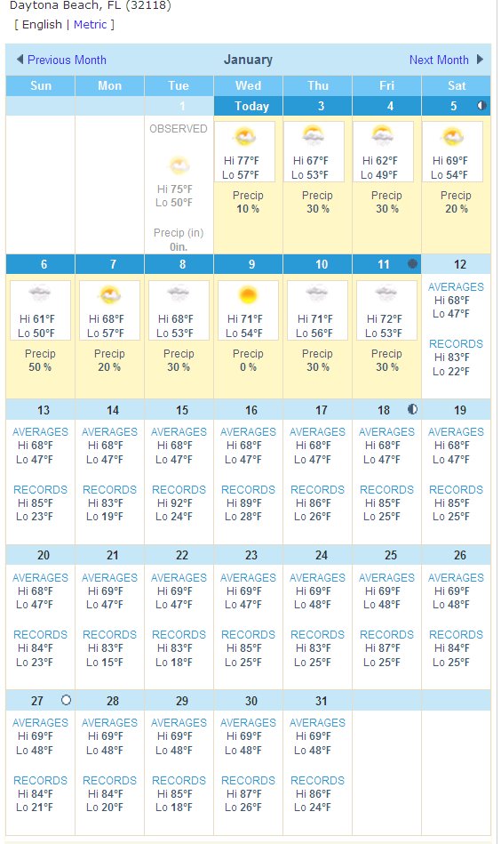 My source for the pictures is www.weather.com, entering Daytona Beach’s zip code of “32118” will get you weather for today – this weekend – this week – a 5 day forecast or a 10 day forecast.